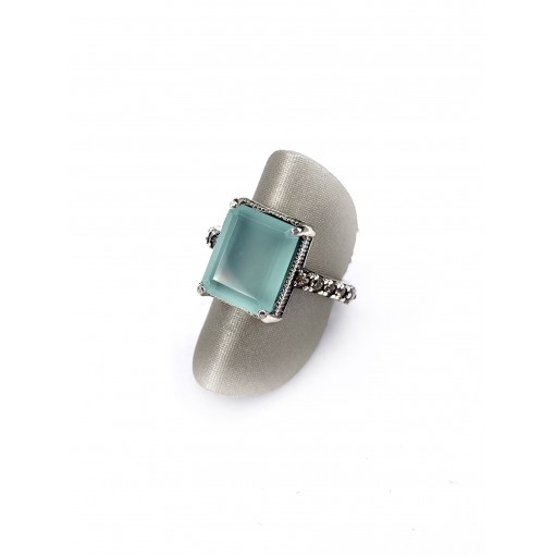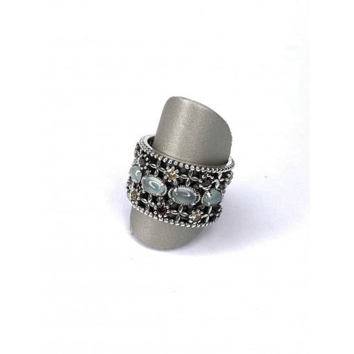 Anillo boho aqua ancho flores