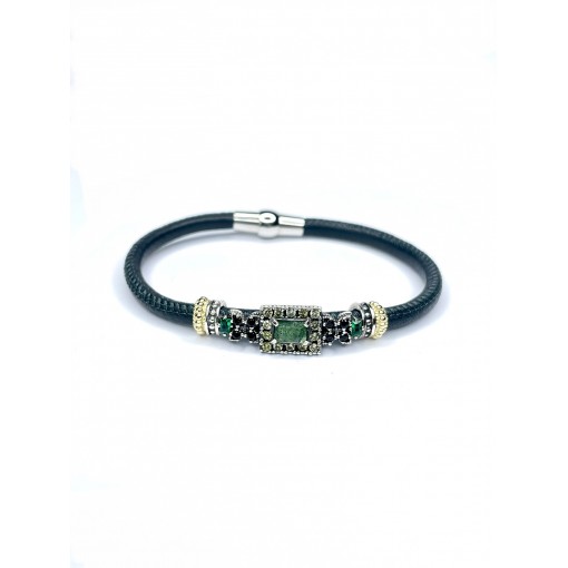 Pulsera Piel Bisel Redondo y Zoisitas