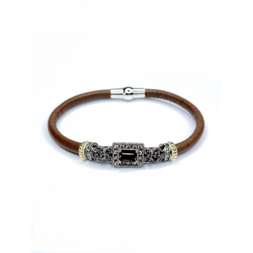 Pulsera Piel Caña Ancha con Piedra central Rectangular