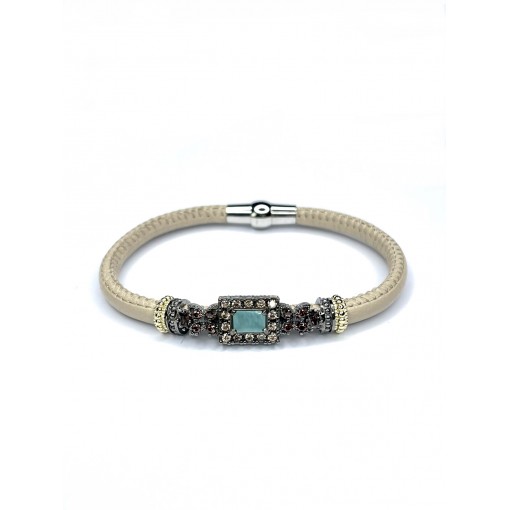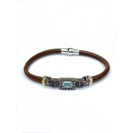 Pulsera piel rectangulo . Calcedonia