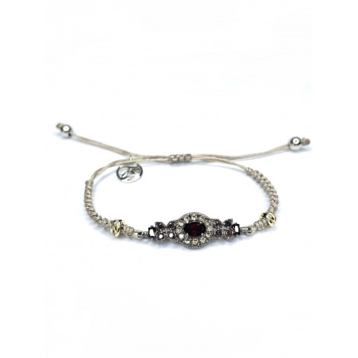 Pulsera macramé oval boho GRANATE