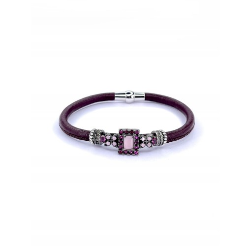 Pulsera piel oval opalo rosa