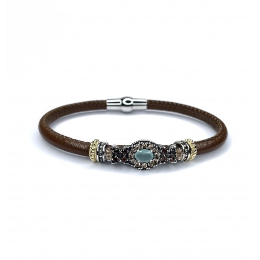 Pulsera piel oval calcedonia