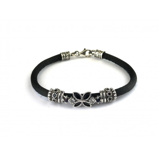 Pulsera seda negra motivo flor