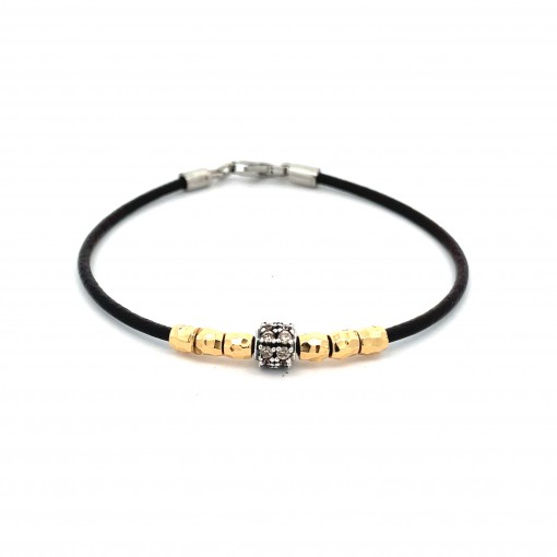 Pulsera slim 2 tiras piel 2 mm abalorios boho