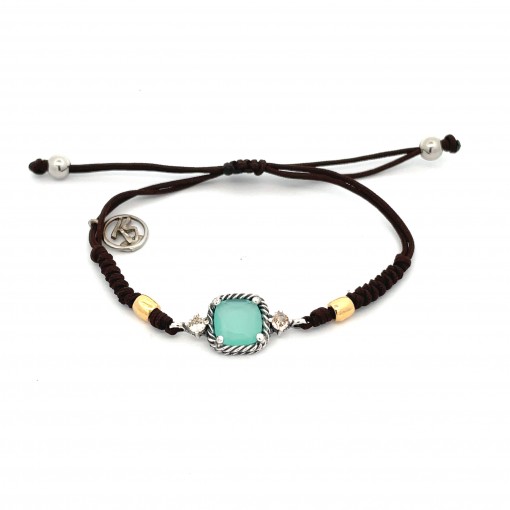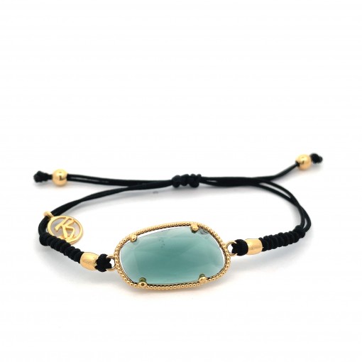 Pulsera slim piel 2 mm abalorios boho cabujon calcedonia