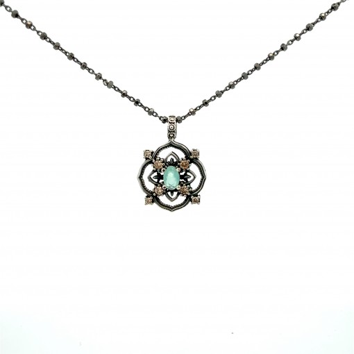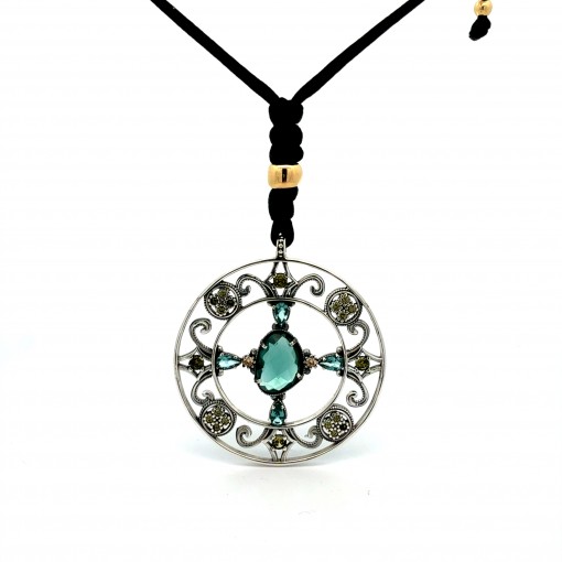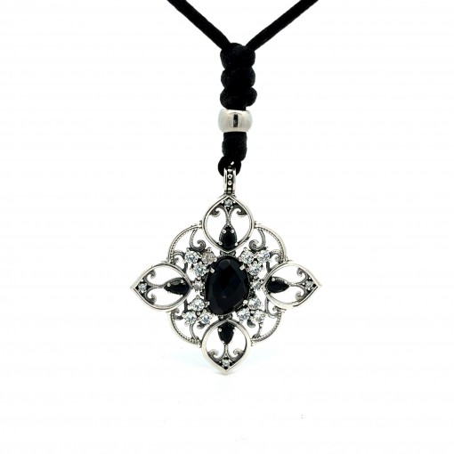Colgante calado hojas centro briolet negro