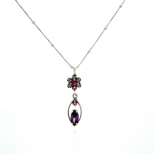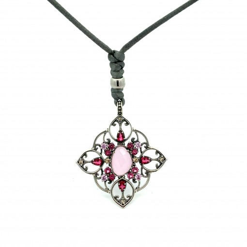 Colgante calado hojas centro briolet rosa magenta