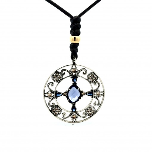 Colgante calado hojas centro briolet azul