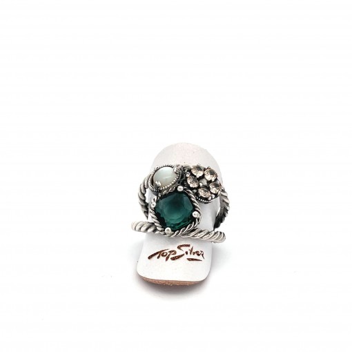 Anillo hilo trenza boca cuadrada Turmalina chapado