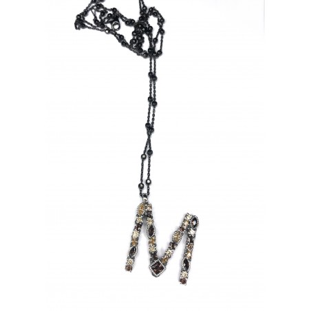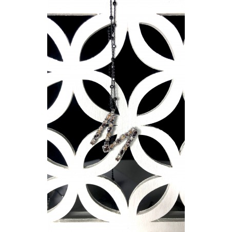 Letra de 30 milímetros de alto con piedras varias encastadas. Se pueden hacer en combinaciones marrones, verdes, azules, negras, rosas y mulitocolor. siempre consultar plazos de entrega en puntos de venta. se pueden hacer con cadena o seda. EL PRECIO SON CON CADENA EN ESTE CASO.