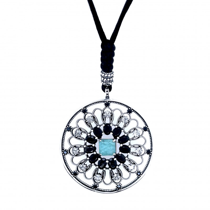 Colgante Azalea Amazonita blanco negro SEDA