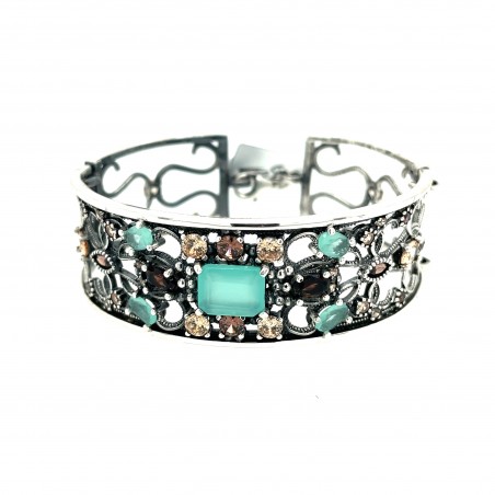 Fantástica esclava de plata de ley. La reina de la temporada. Piedras calcedonias y zirconitas en fumé y cava. Di