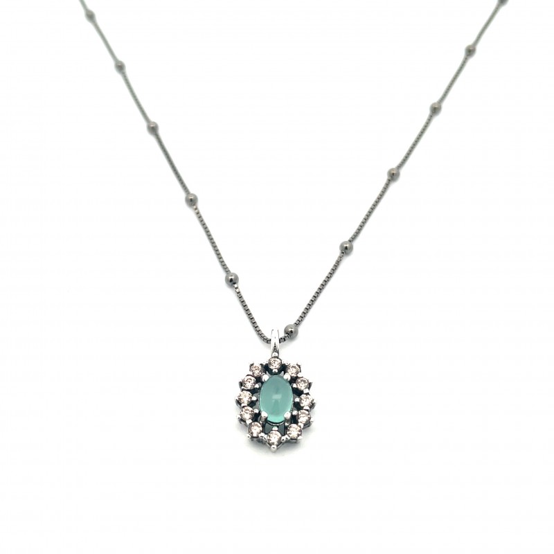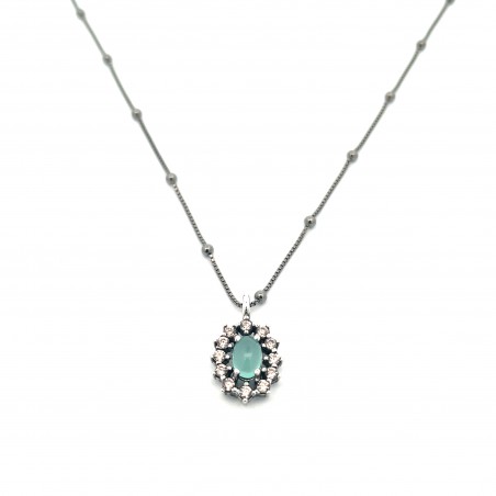 Colgantito de plata con centro de Calcedonia natural 6x4mm ( origen de la piedra India). con zirconitas cava y cadena de plata con bolitas a 40cm mas extensor.