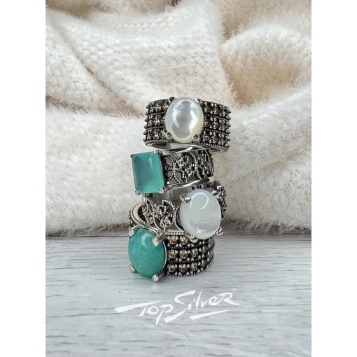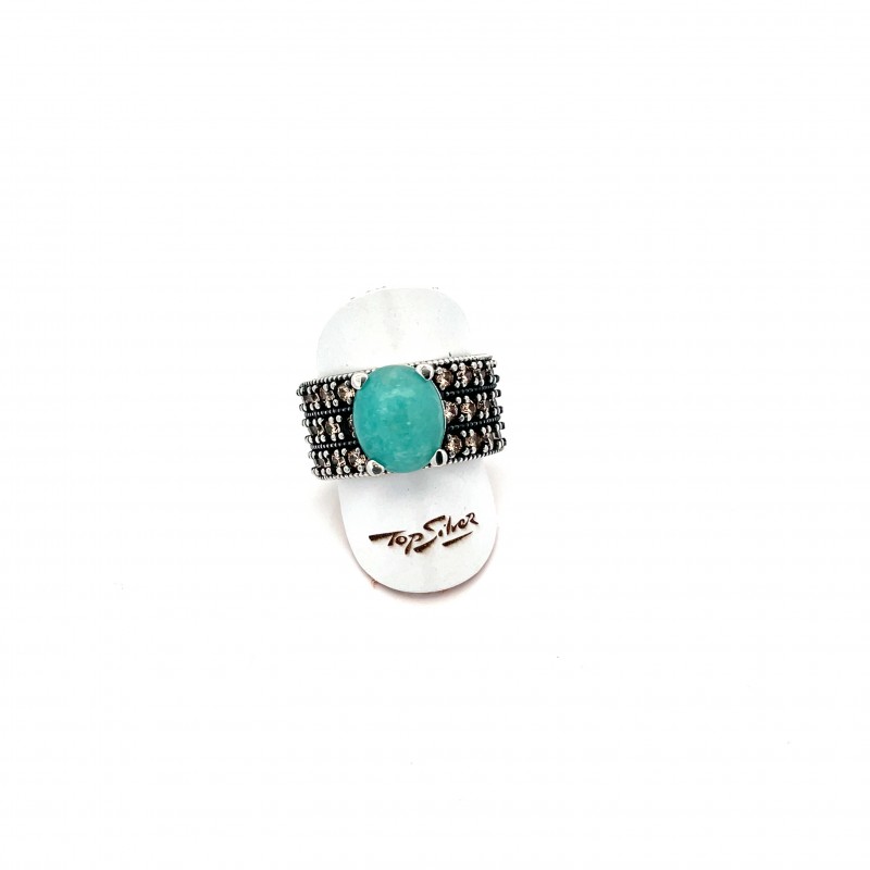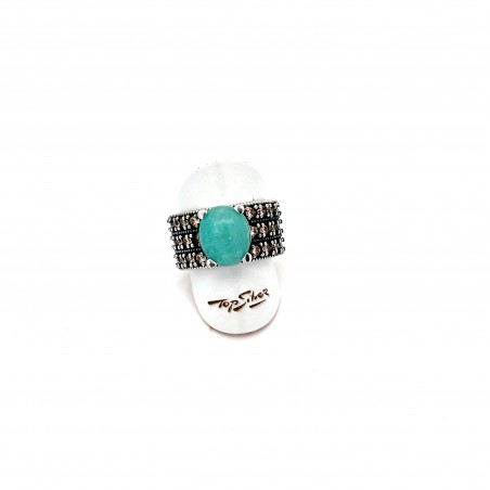 Anillo boho AMAZONITA oval pavé