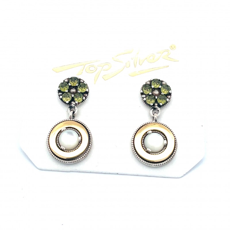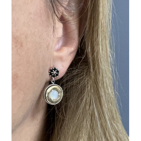 Pendiente articulado cabujon y rosetón NACAR