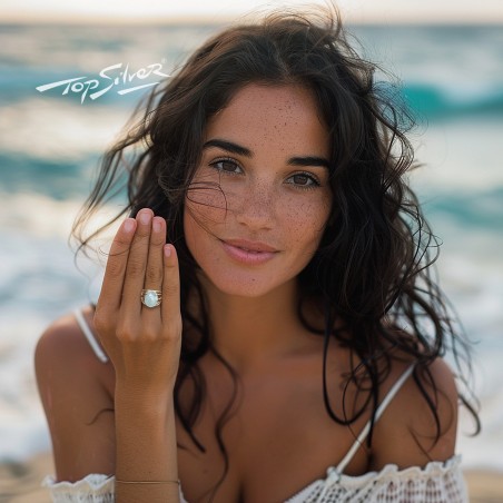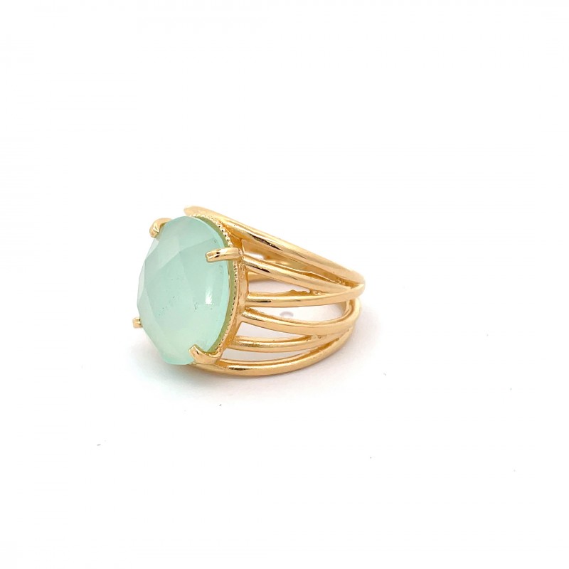 Anillo hilos cabujon facetado calcedonia plata chapada