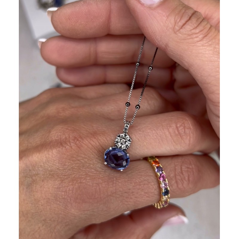 Colgante plata de ley con cadena de plata de ley con baño galvánico de rutenio. Zirconitas color cava de