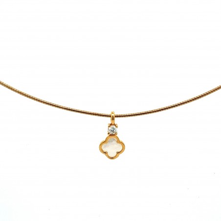 Flor 9 mm con nacar natural y zirocnita 3mm. cable o cadena a escoger.
