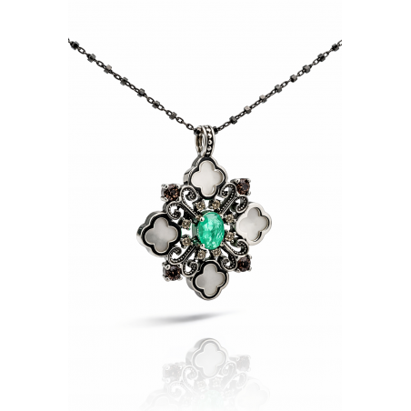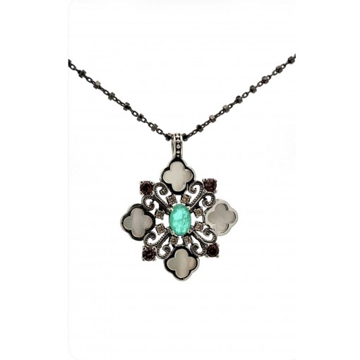 Gargantilla 4 flores nacar BOHO quarzo verde cadena .