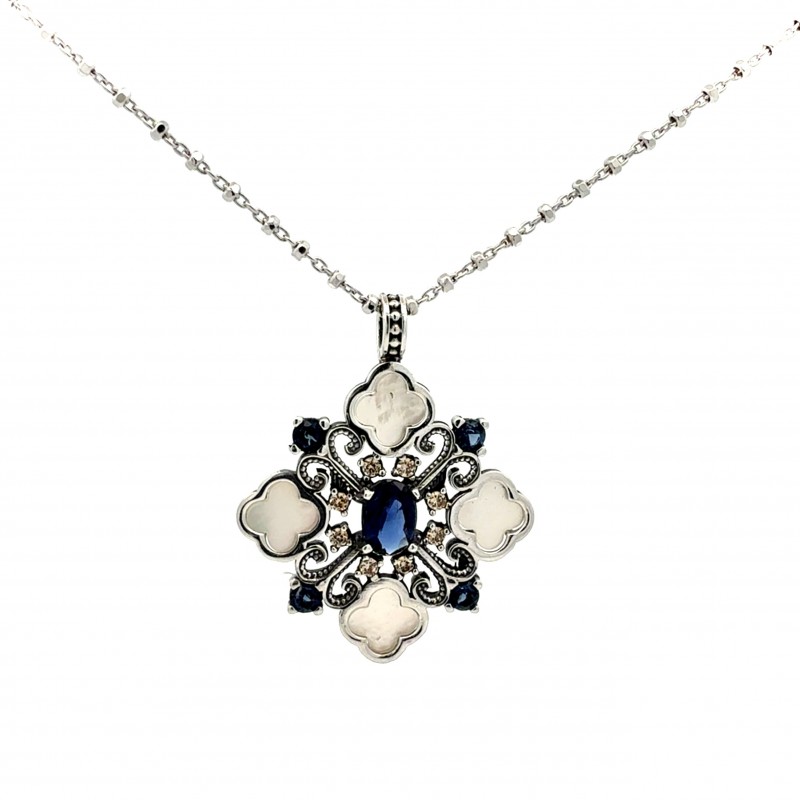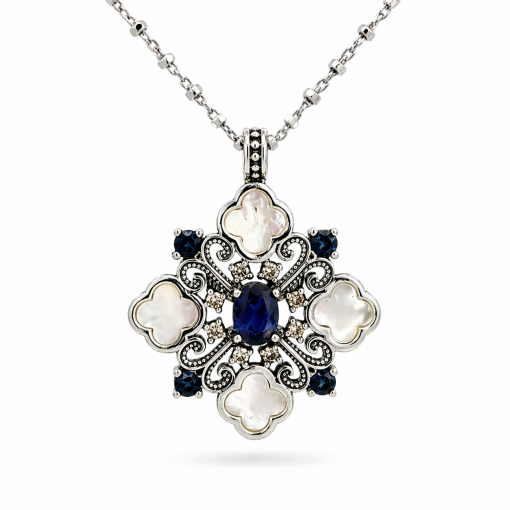 Gargantilla 4 flores nacar BOHO azul cadena .