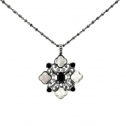 Gargantilla 4 flores nácar BOHO espinel negro cadena .