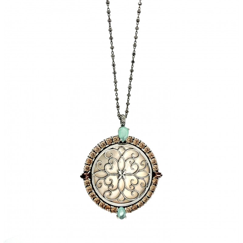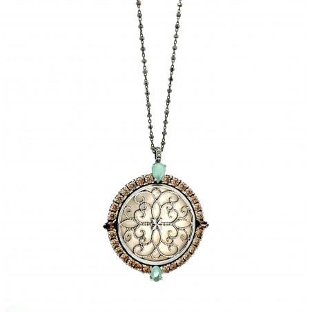 Medallón nacar 40mm. con cadena 50cm