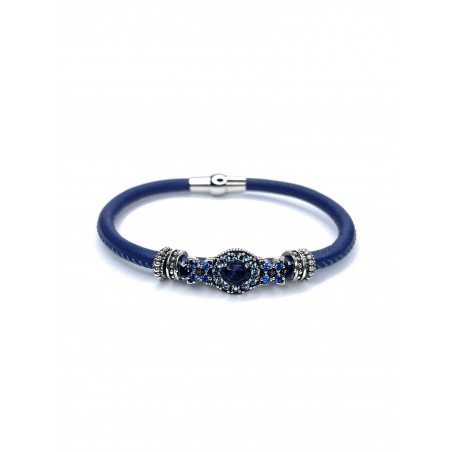Pulsera piel napa marrón con pieza de plata de ley con piedra natural.