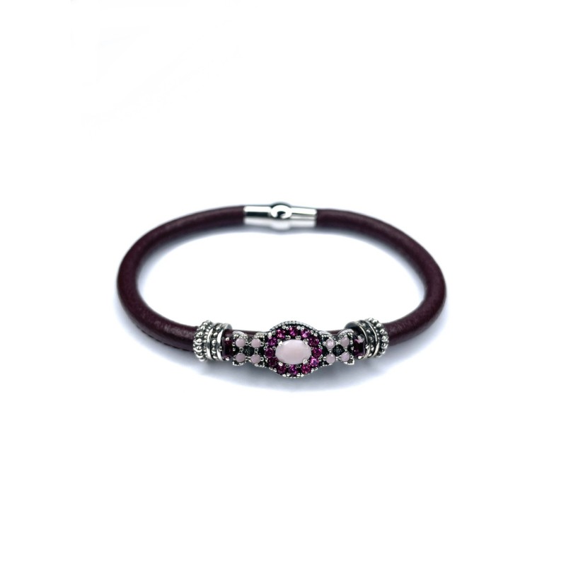 Pulsera piel napa marrón con pieza de plata de ley con piedra natural.