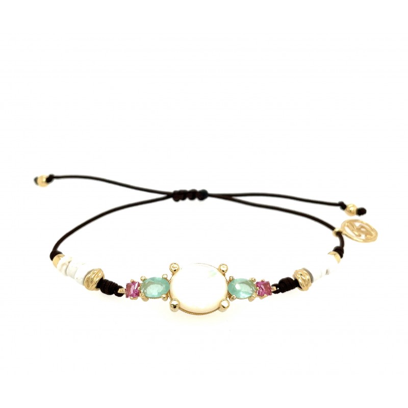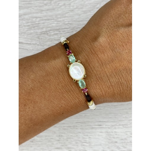 Pulsera oval Madre perla tubos plata Chapada